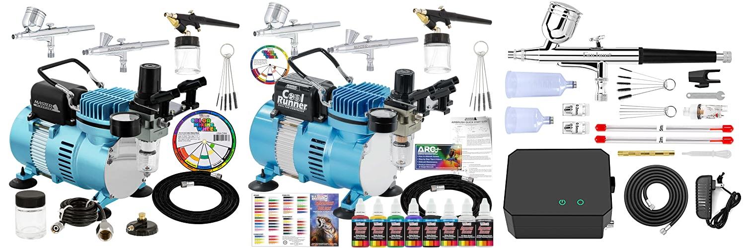 1. Master Airbrush Cool Runner II Dual Fan Air Compressor Professional Airbrushing System Kit with 3 Airbrushes