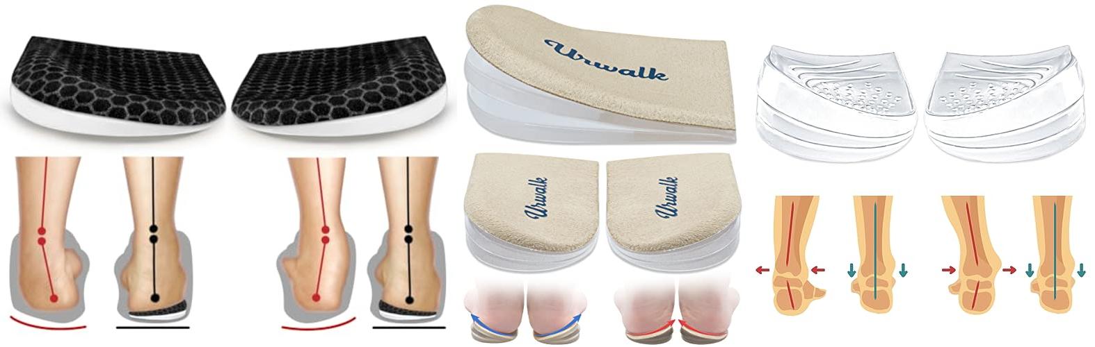 Are you tired of knee pain, or do you notice your feet rolling inward or outward when you walk? The Urwalk 3 Layers Adjustable Shoe Inserts are designed to help! These special inserts, also called heel wedges, can fix problems caused by how you walk. They can help with knock knees, bowlegs, and pain in your knees, hips, and even your back.
