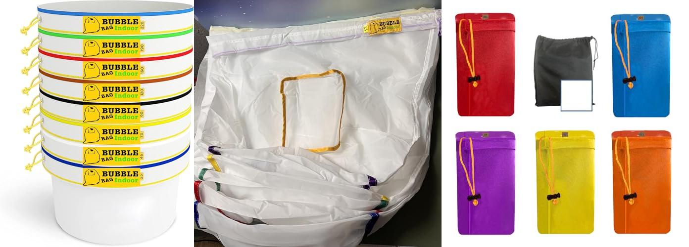Good bubble bags come with a range of mesh sizes. You’ll usually see sizes from 220 microns down to 25 microns. The bigger micron bags catch bigger bits of plant stuff. The smaller micron bags catch the finest trichomes. Having many sizes lets you get the purest hash. You can choose the best quality from each wash.