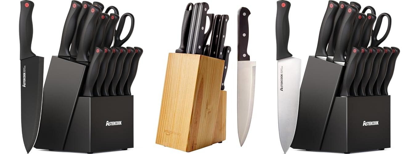 This Astercook knife set is a great option for any home cook. It offers a lot of value and convenience. The built-in sharpener is a huge plus!