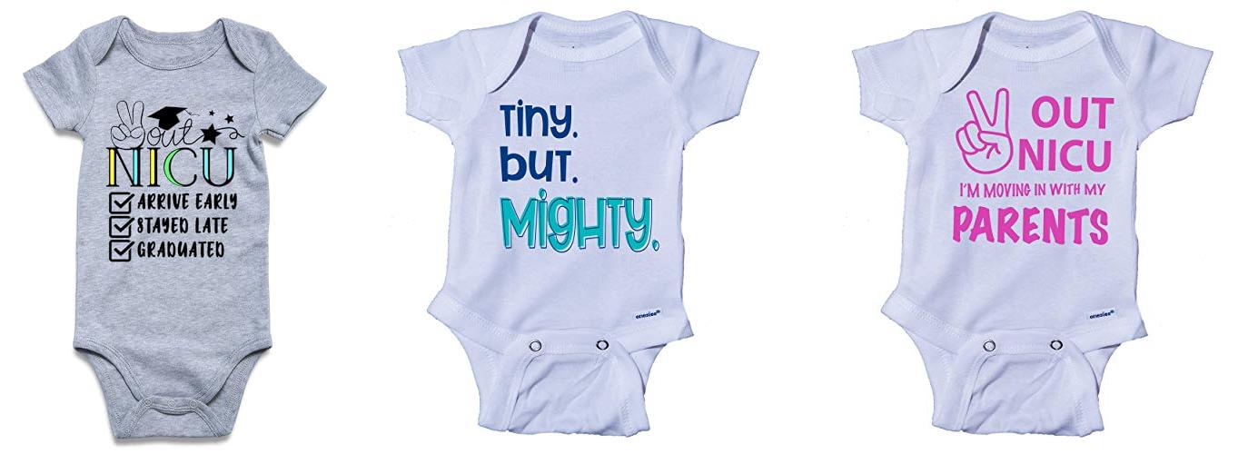 - The “out NICU” design is a sweet and celebratory message.