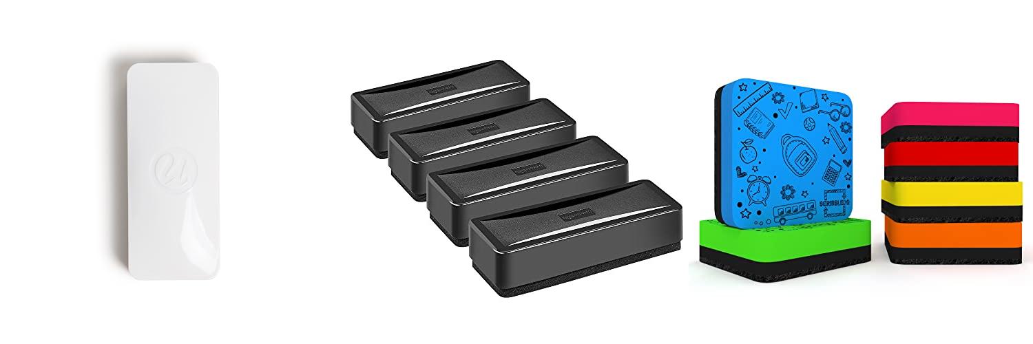 - Strong magnets keep the erasers attached to whiteboards and refrigerators, preventing them from getting lost.