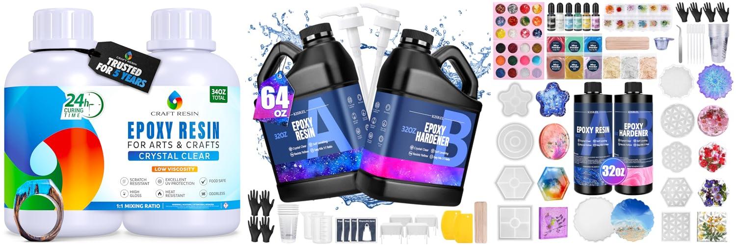 - Complete kit: Includes resin, hardener, measuring cups, spatulas, stirring sticks, and gloves.
