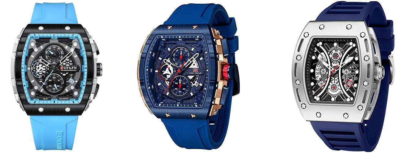 2. MF MINI FOCUS Men’s Watch Fashion Tonneau Wrist Watches (Chronograph/Waterproof/Luminous/Calendar) Silicon Strap Quartz Watch for Men…