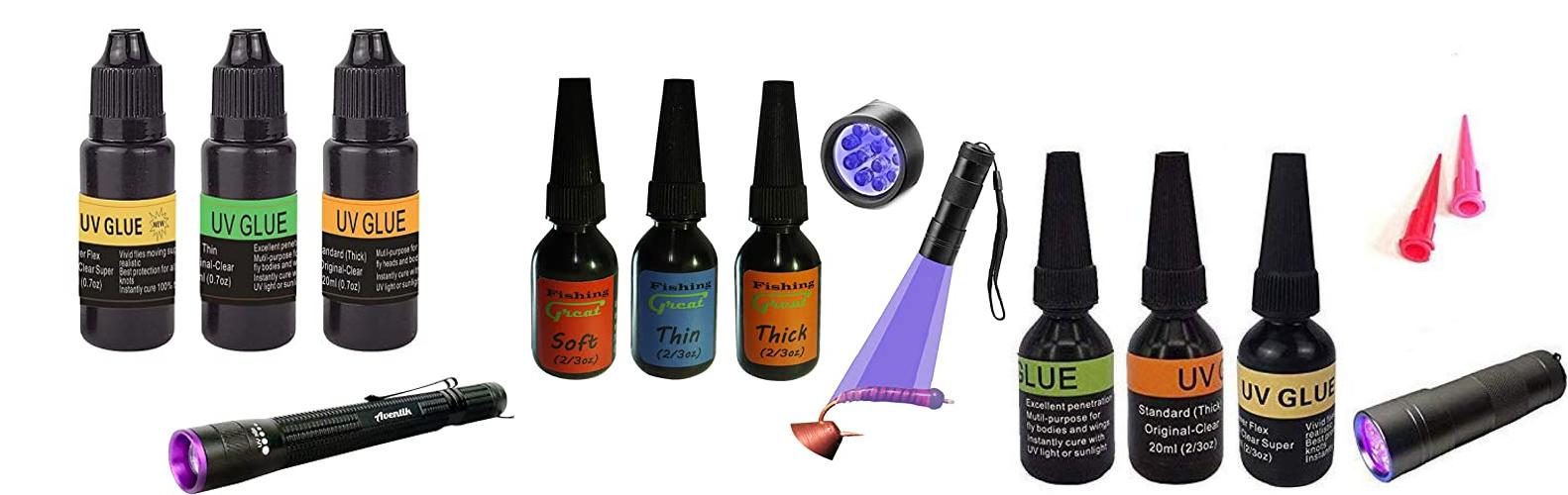 2. GREATFISHING Fly Tying UV Clear Glue and Power Light Combo Three Bottles Thick Thin and Soft +12 LED Light for Building Flies Heads Bodies Wings and Gluing Eyes