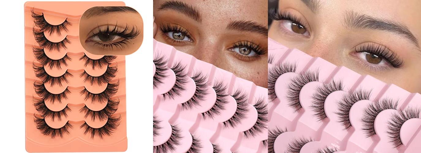 1. False Eyelashes Wispy Lashes Natural Look Fake Eyelashes Cat Eye Lashes Mink Fluffy Strip False Lashes Fox Eye Lashes Pack 7 Pairs ALICROWN