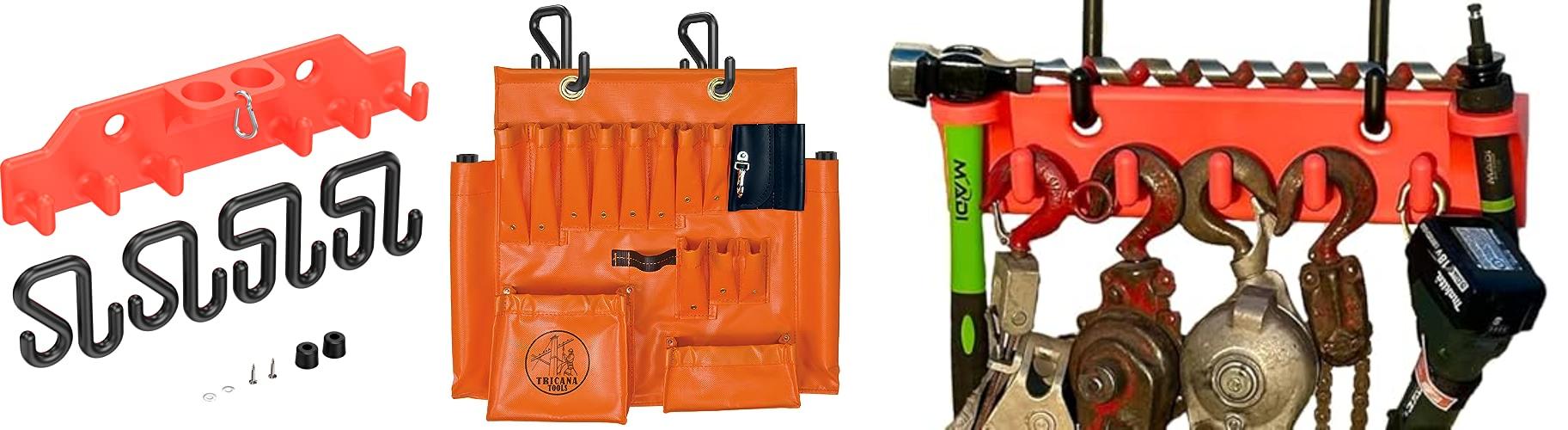 - It has many hooks and loops for all your tools. You can hang grips, hammers, and ropes.