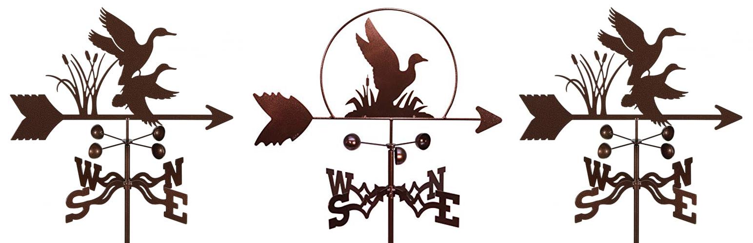 - Complete kit! The weathervane includes everything you need. You get the Mallard Ducks topper, the 4-sided mount, wind cups, and an indicator.