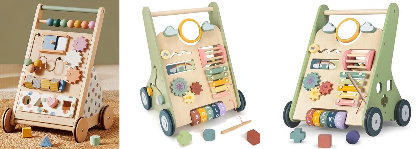The Tiny Land Wooden Baby Walker is a fantastic toy for your little one! It’s a baby push walker, a Montessori toy, and an activity center all in one. This walker helps babies learn to walk and play at the same time. It has features to keep your baby entertained and encourage their development.