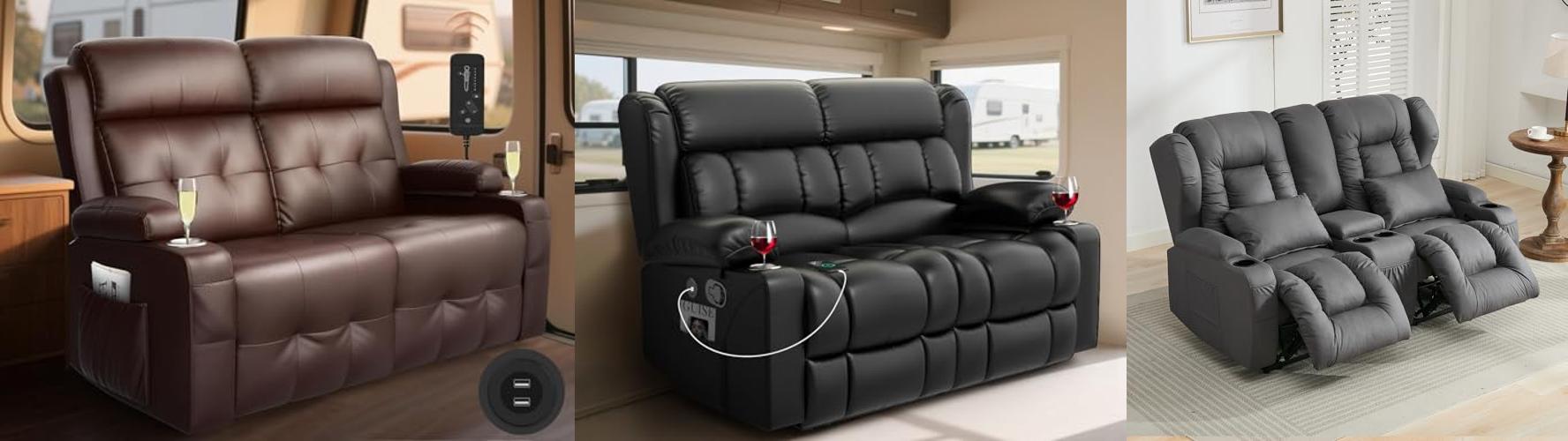 Ready to upgrade your RV or home theater experience? The MisUMis RV Loveseat Recliner Sofa is here to make your adventures and relaxation sessions way more comfortable. This wall-hugger loveseat recliner is designed to save space, making it perfect for travel trailers. It’s packed with features to keep you charged, hydrated, and organized.