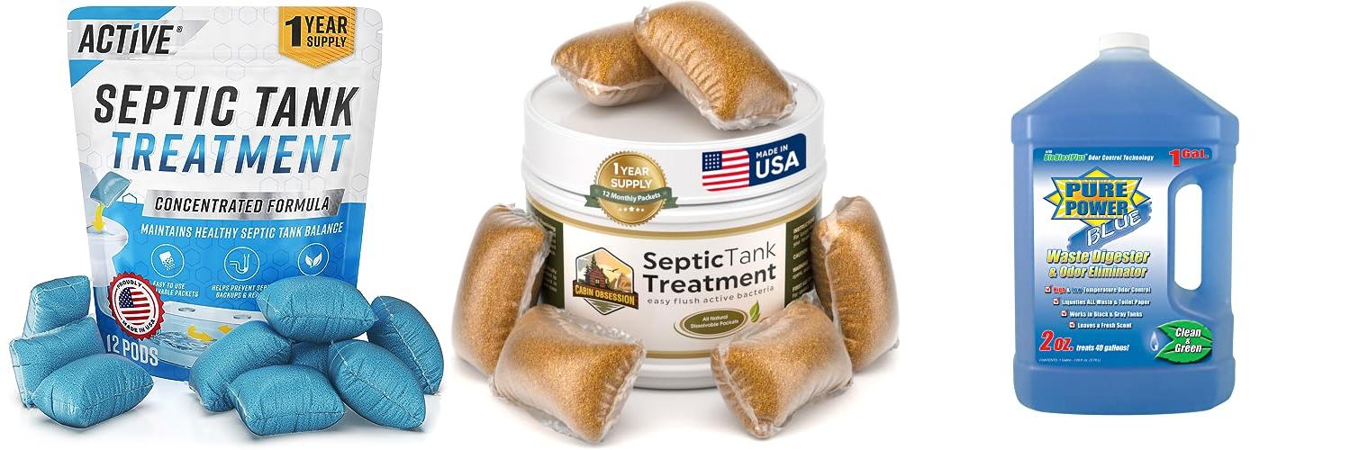 • Bacteria: Some products add good bacteria to your septic tank. These bacteria also help break down waste and reduce smells.