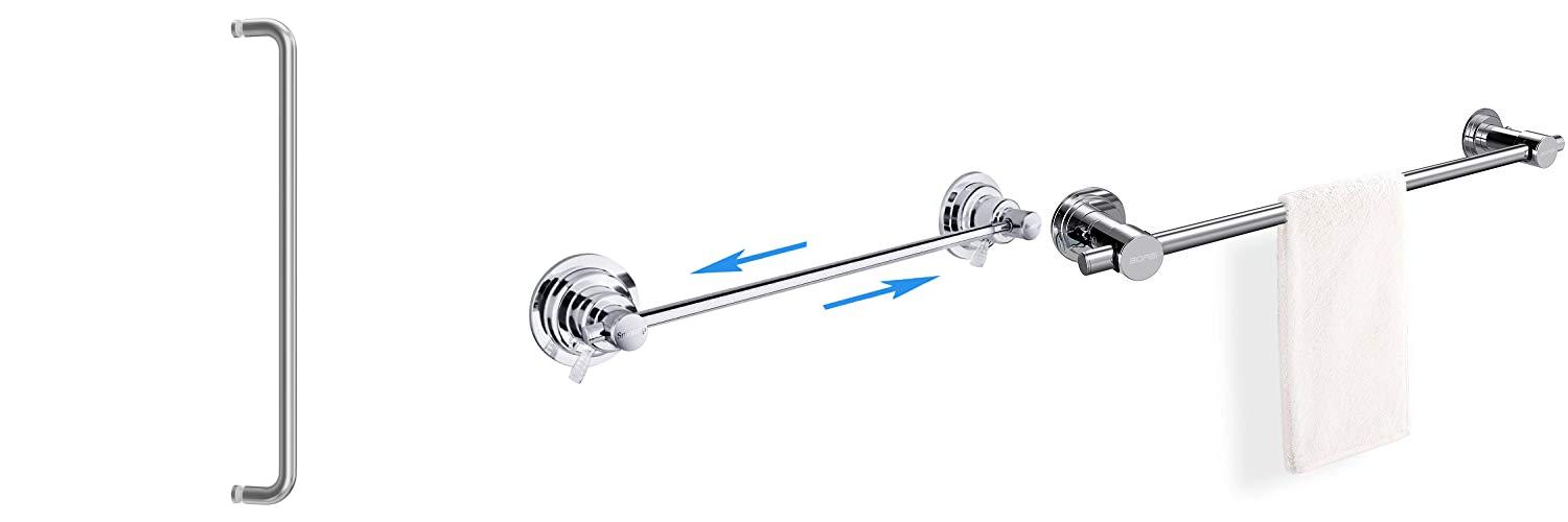 4. DGYB Adjustable Suction Cup Towel Bar for Bathroom 14 Inch ~ 27 Inch Brushed Nickel Towel Rack Stainless Steel Bath Towel Holder for Glass Shower Door